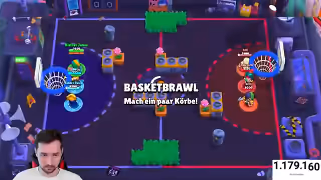 01:10:31Um die Siegesserie aufrechtzuerhalten und schneller Prestige zu erreichen, wird der Spielmodus mehrmals geändert. Zunächst wird Brawl Ball gespielt, was als schwierig angesehen wird, da der Streamer mit Power Level 1 kaum Schaden anrichten kann. Daraufhin wird auf Basketball und Trio-Showdown umgestiegen, um die Trophäenzuwächse pro Runde zu maximieren und die Spannung aufrechtzuerhalten.