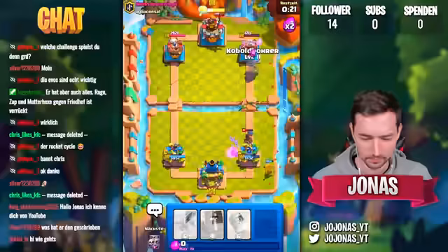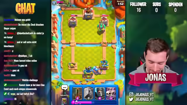 Jojonaz startet die Clash Royale Grand Challenge mit einem 1000€ Account und setzt auf zufällige Decks. Trotz anfänglicher Schwierigkeiten und negativer Bewertungen der Zuschauer gelingen überraschende Siege. Strategische Anpassungen und riskante Manöver führen zu Erfolgen, aber auch zu knappen Niederlagen. Der Einsatz von 'Poison'-Zaubern und 'Hexen' erweist sich als entscheidend, während der Streamer stets nach dem optimalen Deck sucht, um die Challenge erfolgreich abzuschließen.