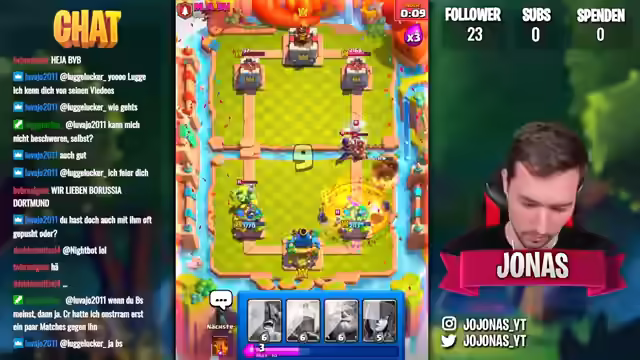 00:36:42Der Streamer startet eine zweite Challenge und präsentiert ein neues Deck mit Holzfäller und Ballon, das er als richtig nice bezeichnet. Er geht direkt in den Angriff und kann den Turm des Gegners zerstören. Er verteidigt sich mit einem Evo-Zap und macht Druck. Der Gegner spielt eine Kanone und eine Prinzessin, aber der Streamer kann kontern und den Sieg erringen. Er freut sich über das geile Deck und erhält Elektrogeister. Das nächste Deck ist absolut bodenlos und enthält eine Barbarenhütte. Er platziert die Hütte tief und verteidigt sich mit einem Golden Knight. Der Gegner spielt einen Feuerball, aber der Streamer kann mit einer dritten Welle kontern. Er greift mit einem Ballon an und zündet seinen goldenen Eis. Der Gegner ist eine Feuerwehr oder ein Magier schlauer gewesen. Er verteidigt sich mit einer Hexe und einem Feuerball und kann den Sieg erringen. Das nächste Deck gefällt ihm gar nicht und er geht mit einem Bowler in den Angriff. Er hat einen Elektrogeist und einen Freeze. Der Freeze ist geil und er kann den Turm des Gegners zerstören. Er plant einen großen Goblin Giant Push und verteidigt sich mit einer Musketieren. Der Gegner spielt eine Hexe, aber der Streamer kann kontern und den Sieg erringen. Er freut sich über den Sieg und erhält Blasrohrkobolde.