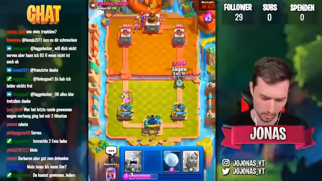 00:00:14Der Stream beginnt mit der Erklärung der GRAND CHALLENGE auf einem 1000€ Account. Der Streamer startet bei 0 Siegen und jedem Sieg werden bessere Belohnungen versprochen. Er erhält ein zufälliges Deck, das er nicht vorhersehen kann, und beginnt sofort mit dem ersten Kampf. Gegner hat einen Mega-Ritter, was für den Streamer unangenehm ist, aber das Deck als solides eingestuft wird.