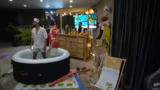 01:17:45Eine neue, spektakuläre Herausforderung beginnt: das Wettspringen. Die Teilnehmer sollen gemeinsam eine schmale Platte im Pool mit einem Sprung erreichen. Sammy und Marc führen einen gemeinsamen Spruch durch, um die Stabilität der Konstruktion zu testen. Der Spruch gelingt und die Teilnehmer bleiben sitzen, der Erfolg wird gefeiert.