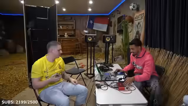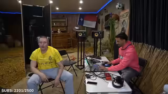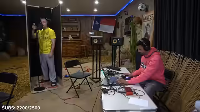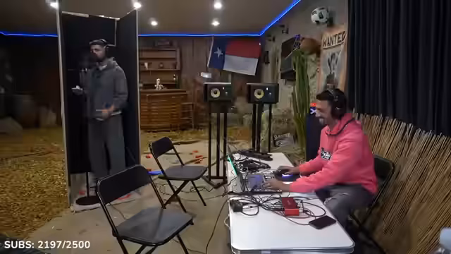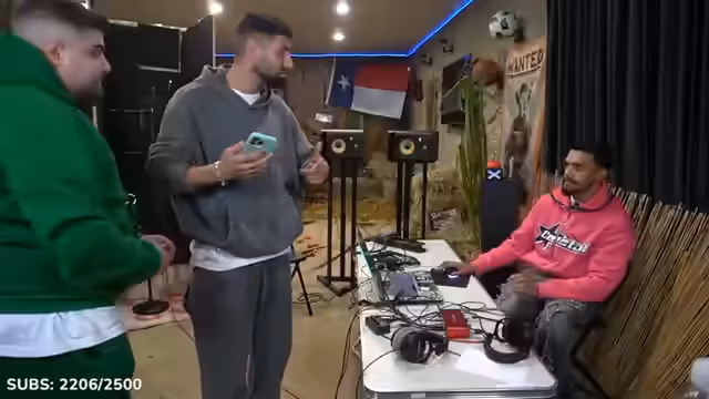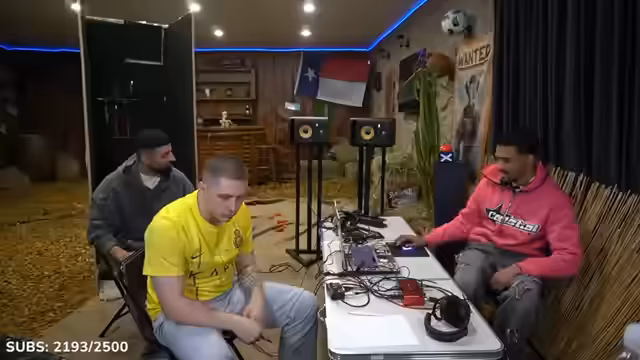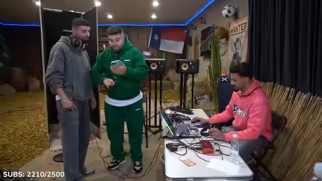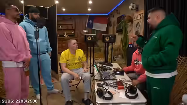 02:47:03Die Beteiligten arbeiten intensiv daran, den Einstieg des Disstracks zu perfektionieren. Es wird versucht, einen "geilen Effekt" zu erzielen, indem der Sprecher seine Lines im Hintergrund mit einem speziellen Soundeffekt unterlegt. Die Herausforderung besteht darin, den richtigen Zeitpunkt und die passende Tonlage für den Einstieg zu finden, um die gewünschte aggressive Stimmung zu erzeugen. Es wird wiederholt geübt, die Zeilen "Diss dich im Stream, ich mach's überm Beat. John Armani, sogar deine Oma ist verliebt" mit der richtigen Intensität und dem passenden Rhythmus zu performen. Die kreative Zusammenarbeit ist von Trial-and-Error geprägt, um den idealen Startpunkt für den Disstrack zu finden und die Zuhörer sofort zu fesseln. Die Atmosphäre ist von Konzentration und dem Wunsch geprägt, eine überzeugende musikalische Performance abzuliefern, die sowohl technisch als auch emotional ansprechend ist.