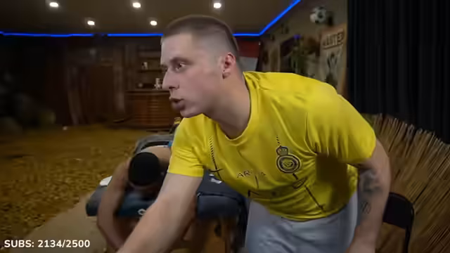 05:26:47Der Streamer führt humorvolle 'Bettentests' durch, um die Qualität der Matratze zu prüfen, darunter das 'Fallenlassen', die 'Welle' und den 'Kugelstoßer'. Er stellt fest, dass sein Bizeps zu groß ist, um sich am Rücken zu kratzen, was zu weiteren humorvollen Kommentaren führt. Eine besondere Herausforderung wird angenommen: Für eine bestimmte Anzahl von Subs verspricht der Streamer einen Backflip zu machen. Trotz seiner Angst, die Matratze zu beschädigen oder sich zu verletzen, bereitet er sich auf den Backflip vor. Nach mehreren Versuchen und Zögern führt er den Backflip aus, was zu einem Knacken im Nacken führt und ihn dazu bringt, die Aktion zu beenden.