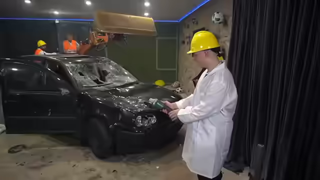 Auto-Zerstörung mit Bagger und Raketen: Spektakuläre Aktion mit Special Guest