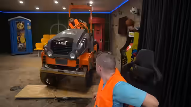 00:03:00Nach dem Streamstart begrüßt der Streamer sein Publikum und erläutert, dass der heutige Inhalt exklusiv auf Twitch zu sehen ist. Die Hauptschaukulisse ist eine Dampfwalze, die mit erheblichen Mühe ins Studio transportiert wurde. Obwohl die Anschaffung und der Transport anspruchsvoll waren, wird das Gerät als zentrales Element des Streams vorgestellt und mit Spannung erwartet.