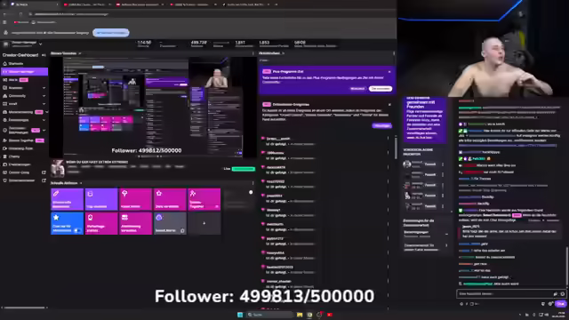 00:56:40Es wird die Community dazu aufgerufen, den Kanal zu abonnieren, um die Marke von 500.000 Abonnenten zu erreichen. Trotz der fast erreichten Zahl von 499.761 Abonnenten werden die Zuschauer motiviert, die fehlenden Abonnements beizutragen. Der Streamer feuert die Community an, die verbleibenden Abos abzuschließen. Es wird betont, dass es nicht mehr viel fehlt, um das gemeinsame Ziel zu erreichen. Die Community wird animiert, alles zu geben, um die 500.000er Marke zu knacken.