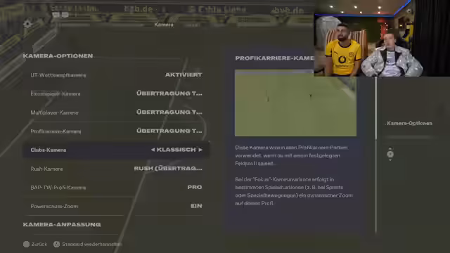 00:12:53Der Streamer startet das FIFA-Match und bemerkt, dass die Bildschirmdarstellung verblasst und unzureichend ist. Er versucht verschiedene Einstellungen zu ändern, was aber zu weiteren Problemen führt. Der Streamer äußert seine Frustration über die technischen Schwierigkeiten und bittet die Zuschauer um Ratschläge. Er betont, dass sie keine Ahnung von Einstellungen und Technik haben und bittet um Nachsicht.