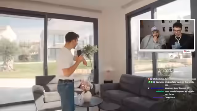 01:00:17Der Streamer beginnt mit einer spontanen und ungeplanten Vorstellung seines neuen Wohnhauses. Er führt die Zuschauer durch verschiedene Räume, darunter das Wohnzimmer mit seiner provisorischen Musik-Ecke und dem unpassenden Fernseher-Sideboard, sowie den oberen Stockwerk mit einer praktischen Galerie. Der Fokus liegt auf der Darstellung des aktuellen Einrichtungsstands und des Grundrisses, wobei er betont, dass das Haus noch nicht vollständig eingerichtet ist und ihm ein wohnlicher, cozy Vibe aufgrund der vielen Sonnentage und Hitze fehlt.