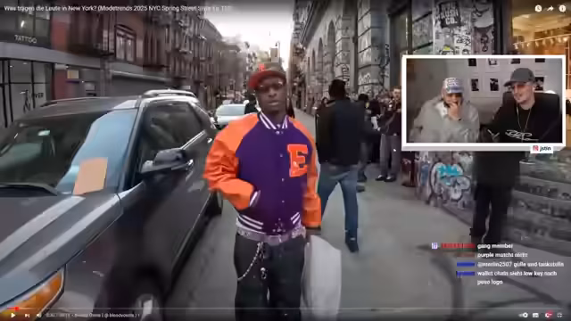 00:55:26Ein weiteres Modell wird interviewt, die ein sehr stilvoltes Outfit aus Vintage-Stücken und einer markanten Lederjacke trägt. Ihr Look wird vom Streamer und Bloody Osiris analysiert und positiv bewertet. Sie gibt Einblicke in ihre Modelkarriere und ihr persönles Gefühl, bald in New York zu sein. Das Segment zeigt die Vielfalt der Styles in der Stadt und unterstreicht den internationalen Bezug der geplanten New Yorker Inhalte.