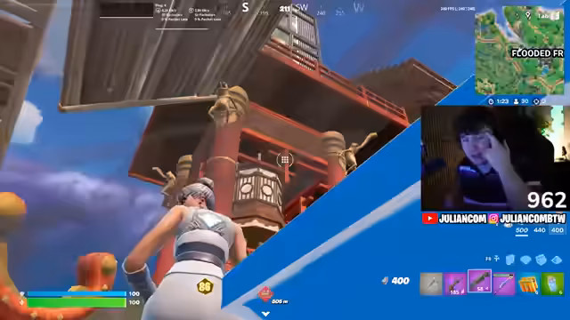 01:41:15Der Streamer setzt Boogie Bomb ein und sucht aktiv nach einem Mad Kid, während er seine Waffe als unterbewertet ansieht. Er ist in den fatalen Feldern und lootet weiter. Er merkt, dass vier Leute neu gestartet sind und er in den fatalen Feldern ist. Er kann die Gegner snipen und sich am Haus verstecken, während seine Mitspiiter die Gegner in der Distanz halten.
