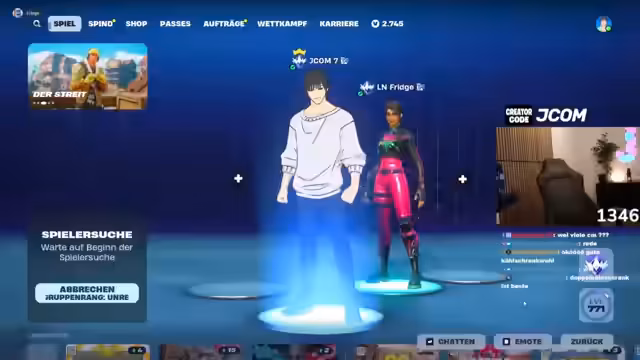 Fortnite-Spiel und Lobby-Dynamik