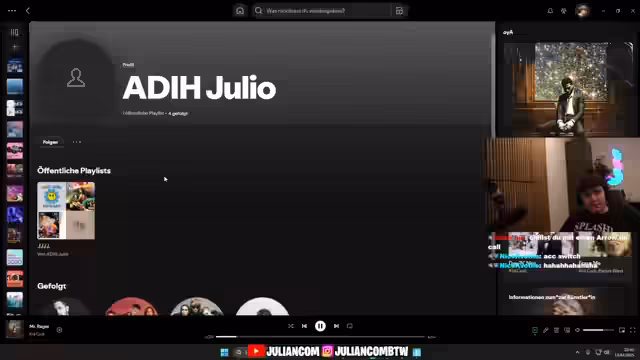 01:23:49Nach den anhaltenden Problemen mit der aktuellen Gruppe entscheidet sich der Streamer für einen Wechsel der Mitspieler, um die Qualität des Spiels zu verbessern und mehr Spaß zu haben. Er bittet den Chat um Vorschläge und überlegt, ob ein gezieltes Matchmaking gegen eine spezifische Gruppe sinnvoll ist. Parallel dazu wird ein neues Format für den Stream vorgeschlagen: die Bewertung von Spotify-Playlists, was eine Abwechslung vom reinen Gaming und eine stärkere Einbindung des Chats darstellt.