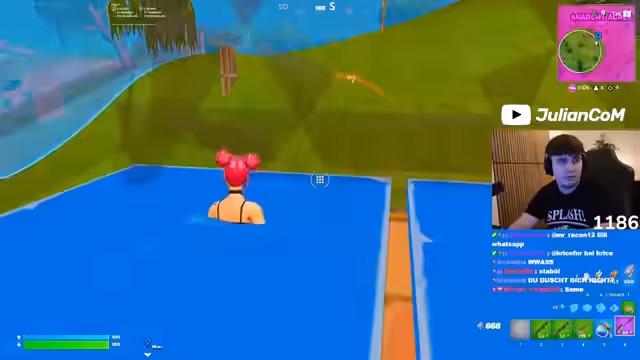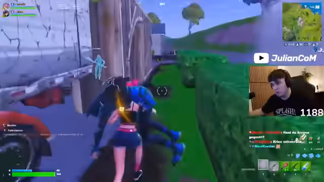 04:43:23Während des Spieles gibt es hektische Momente mit vielen Schüssen und Überraschungsangriffen. Der Streamer wird angegriffen, schafft es aber, zwei Gegner zu eliminieren und erhält schließlich den 'Finish' an einem anderen Spieler. Die Dynamik ist intensiv mit Positionswechseln und taktischen Bauten, um den Gegnern zu entkommen oder sie zu kontern.
