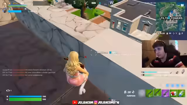 00:09:04Der Streamer und sein Duo-Partner erleben actionreiche Kämpfe. Sie eliminieren Gegner strategisch mit Hilfe von Raketenwerfern, Schilden und Miniguns. Es kommt zu Duelle, in denen sie unterlegen sind, aber sich schnell wieder erholen. Einige Momente sind unglücklich, etwa als der Streamer selbst versehentlich seinen Rücken aufgibt oder einen 50-50-Kampf verliert. Trotzdem dominiert das Duo die Runde mit cleverem Bauen, heilen und Eliminieren. Sie konzentrieren sich auf das Looten und die Kontrolle über wichtige Orte wie das Stadion und den Rift, um den Sieg zu sichern.
