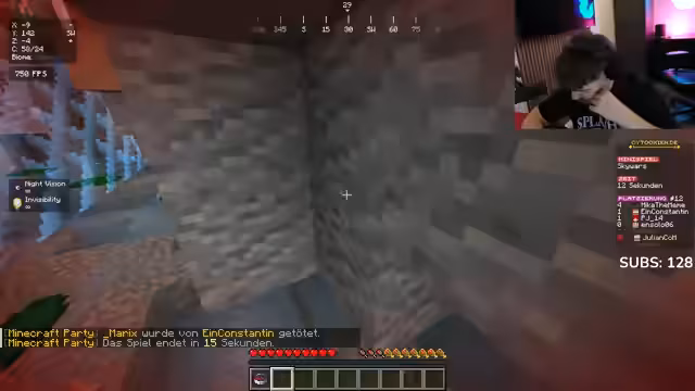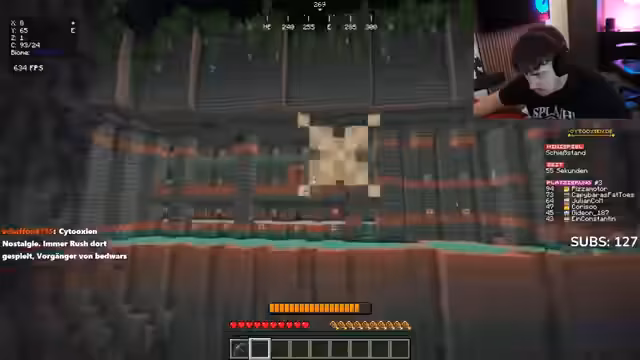 04:21:36Es wird über Minecraft-Gameplay diskutiert, wobei Konstantin einen Screenshot gemacht hat, der fälschlicherweise jemand anderem zugeschrieben wurde. Es folgt eine Diskussion über die eigenen Fähigkeiten im Vergleich zu Top-Spielern wie Peterbot, wobei festgestellt wird, dass das kompetitive Minecraft-Spielen sehr anspruchsvoll ist. Es wird überlegt, wie man von Peterbot lernen kann, um das eigene Spiel zu verbessern. Der Streamer räumt ein, dass er im letzten Jahr wenig Minecraft gespielt hat, da er sich Fortnite zugewandt hat, wo höhere finanzielle Gewinne möglich sind. Trotzdem betont er, dass er in Minecraft immer noch gut dabei ist. Es wird kurz über Teamtaktiken und die Verwirrung eines Gegners gesprochen, nachdem er angegriffen wurde. Abschließend wird über die Effektivität verschiedener Spielmechaniken und die Kürze der Runden im aktuellen Modus geäußert. Der Streamer äußert Frustration über das Fehlen von Wasser im Spiel und eine riskante Situation mit Lava.