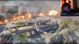03:06:40Ein gewaltiger Airstrike trifft das Spielfeld und verursacht massive Zerstörung, ganze Gebäude stürzen ein. Dies führt zu einem chaotischen Gefecht, bei dem das Team unter starkem Druck gerät und schließlich besiegt wird. Der Streamer analysiert die Wucht des Angriffs und die mögliche Übermächtigkeit dieser neuen Waffe im Spiel.