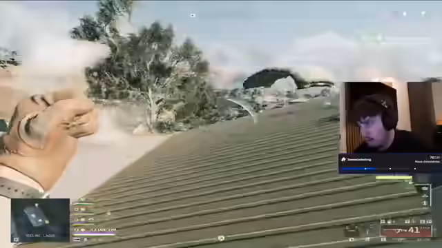 03:38:55Nachdem das Team dem Kampf mit dem Panzer entkommen ist, wendet sich der Streamer kurz persönlichen Dingen zu. Er erwähnt das Trinken von Müllermilch und macht eine kleine Auseinandersetzung mit Erinnerungen an die Schulzeit, die in Szenen wie dem Kauf von Snacks im Supermarkt endet. Parallel dazu beobachtet er weiterhin das Spielgeschehen, feststellt seine Position auf der Karte und entscheidet sich, nach einem Sniper umzuschauen, um taktisch vorteilhaft zu bleiben. Er wechselt die Ausrüstung und baut eine Waffe mit Thermalvisier auf, um einen Vorteil zu erlangen.