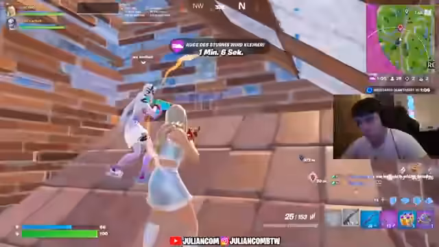 00:10:08Die erste Runde des Reload Cups wird gespielt. Die Partie als sehr zufällig beschrieben, in der Spieler entweder stark aufpoppen oder sofort eliminiert werden. Die Waffenmeta wird eingehend analysiert. Waffen wie die Combat SMG und die Burst-Pistole als stark eingestuft, während andere wie die Hebel-Pumpe und die Infiltrator-Doppelpistole als schlecht und unspielbar gelten. Die grüne Pumpen-Bombe als Geheimwaffe erwähnt.