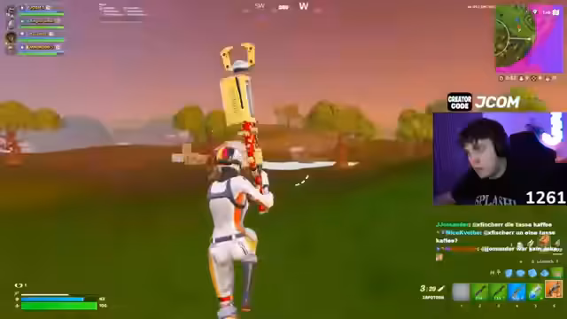 03:00:28Der Streamer ist in guter Verfassung und spielt erfolgreich mit seinem Team Flexi, Viko und Veno. Er zeigt eine gute Performance im Spiel, indem er unerwartete Züge wie das Nutzen von Zap-A-Tron und Rocket Launcher für aggressive Pushes einsetzt. Sein Duo-Partner Trymac ist weiterhin krank, daher spielt er Solo, was er aber gut meistert. Darüber hinaus erwähnt er eine Map-Kooperation mit dem YouTuber HfK, der seine Map für die PS5 adaptieren wird.