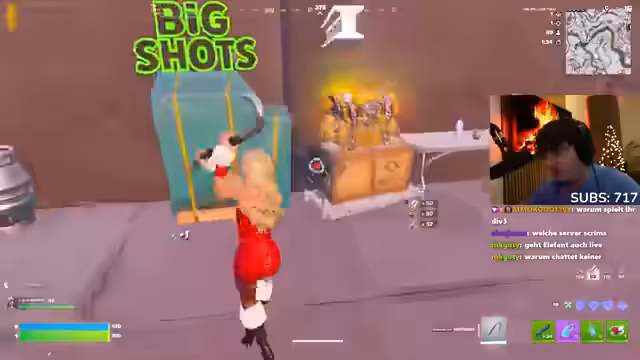 04:55:53Der Fokus des Streams liegt auf dem Spielen von Fortnite im Ranked-Modus. Der Streamer beschreibt seinen Spielstil als eklig und aggressiv, insbesondere nachdem er eine seltene Pump gewonnen hat. Er kritisiert einen Gegner, der die gesamte Runde in einem Tunnel gecampt hat und als er schließlich aufsteht, vom Streamer eliminiert wird. Dieser Sieg wird als glücklich bezeichnet. Danach folgen kurze Pausen und persönliche Gespräche, darunter auch über den bevorstehenden Raid, der aber noch nicht stattfindet.