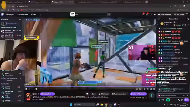 00:25:24Nachdem der Streamer den Start des Turniers verkündet hat, beginnt er mit der ersten Runde. Während des Spiels gibt es technische Schwierigkeiten, die den Streamer dazu bringen, seinen Client neu zu starten. Das Gameplay ist intensiv und beinhaltet Bauen, Kämpfen und das Sammeln von Loot. Der Streamer diskutiert seine Entscheidungen, seine Positionierung auf der Karte und die Taktiken seiner Gegner. Er ist frustriert über seine Performance in einigen Runden und sucht nach Wegen, sich zu verbessern.