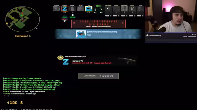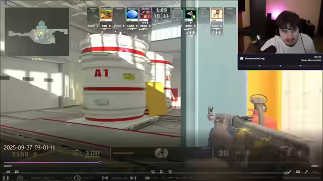 00:01:42Es wird über die Vorbereitung auf die Uni gesprochen und der Bedarf an Geld betont. Um Anreize für Subs zu schaffen, werden Liegestütze bei einem Sub versprochen. Die Uni ist die zweiterste in Deutschland, finanziert sich aber von selbst. BAföG kommt aufgrund von zu viel Geld nicht in Frage. Danach wechselt der Fokus zum Aim-Training in Counter-Strike, wo ein Rekord erzielt wird und nach dem Level gefragt wird. Es wird über das Spielen von Faceit diskutiert und erwähnt, dass man erst vor kurzem mit CS angefangen hat. Es werden beeindruckende Clips aus einem Match gezeigt, in denen Spielsituationen und taktische Manöver detailliert beschrieben werden, einschließlich Kills, Bombenplatzierungen und Teamkommunikation.
