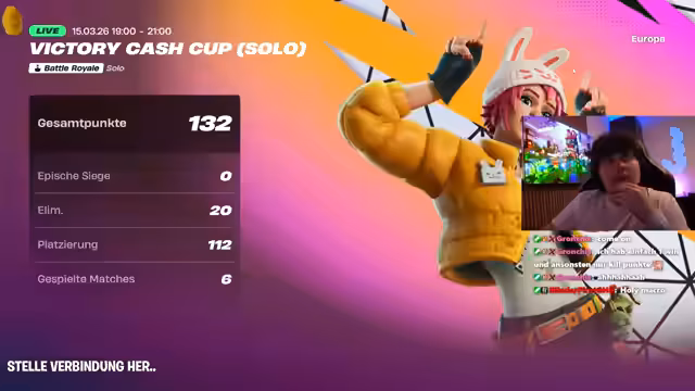 00:21:14Der Streamer konzentriert sich auf den bevorstehenden Solo Cash Cup ab 22 Uhr und betont die Wichtigkeit des Wettbewerbs. Er diskutiert die Teilnahmebedingungen und die Qualifikationsrunde, was dazu führt, dass er über die aktuelle Form von Ali spricht. Es wird deutlich, dass der Cup finanziell attraktiv ist und dass der Streamer motiviert ist, ein starkes Ergebnis zu erzielen, auch wenn er anscheinend Schwierigkeiten hat, sich voll auf das Spiel zu konzentrieren und Frustration über äußere Einflüsse äußert.