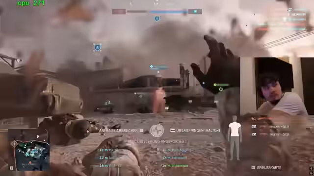 00:20:45Julian ist in einen heftigen Kampf verwickelt. Sein Gegner bewaffnet sich mit einem Ranger Shotgun und einer Grauen. Er beschreibt, wie er versucht, den Gegner mit verschiedenen Waffen, wie einer Schimmel-MP, zu treffen und ihn zurückzudrängen. Er kritisiert die zufällige Damage-Verteilung und die Unberechenbarkeit der Kämpfe. Gleichzeitig tauchen neue Gegner auf und es muss eine taktische Entscheidung getroffen werden, ob man sie bekämpft oder sich zurückzieht.