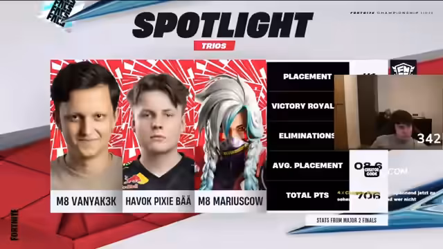 02:30:03Der Streamer und seine Community schauen nun den offiziellen FNCS-Maincast. Es werden verschiedene Teams analysiert und ihre Siegchancen besprochen. Der Fokus liegt auf der Spannung zwischen den Top-Teams wie Malibuka, Flix und Vico, wobei besondere Rivalitäten und Storylines wie die zwischen Malibuka und Vico hervorgehoben werden. Der Streamer identifiziert sich mit den Underdog-Teams und schildert die aktuelle Punktesituation, die entscheidend für die Qualifikation zur Weltmeisterschaft ist.