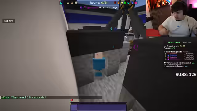 03:08:22Es folgt eine Erklärung des Spiels Blitz Hunt, einem schnellen Versteckspiel, bei dem man sich entweder versteckt oder als Jäger auf die Suche geht. Ziel ist es, als Verstecker so lange wie möglich auszuweichen oder als Jäger möglichst viele Spieler zu erwischen. Es gibt acht Runden, und jede Runde jagt ein Team die anderen. Jede Runde wird eine neue Map generiert, um Chancengleichheit zu gewährleisten. Die Jäger starten mit einem Dunkelheitseffekt, um die Suche zu erschweren. Die Verstecker haben 20 Sekunden Vorsprung. Das Team bespricht Strategien, wobei es sich aufteilt, um nicht alle auf einmal gefunden zu werden. Es wird überlegt, ob man rumlaufen oder sich verstecken soll. Die Teammitglieder verteilen sich in verschiedene Richtungen und suchen nach guten Verstecken. Es wird festgestellt, dass man die Namen anderer Spieler nicht sieht, was das Verstecken erschwert. Einige Teammitglieder werden entdeckt, während andere unentdeckt bleiben.