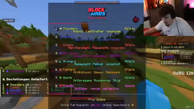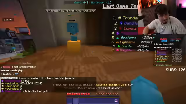 01:02:37Es wird überlegt, gegen wen man zuerst kämpfen wird und ob es sich um 3-gegen-3- oder 4-Team-Arenen handelt. Als schwächste Gegner werden Herr Bergmann und Kevin aus dem roten Team identifiziert, wobei angemerkt wird, dass Herr Bergmann mit Shader spielt und daher weniger FPS hat. Es wird überlegt, welche anderen Spieler man einschätzen kann. Im ersten Kampf wird festgestellt, dass wichtiger direkt hinter dem Team ist und versucht, die Punkte einzunehmen. Fedika wird runtergeschubst und es wird versucht, eine sichere Plattform zu finden. Es wird überlegt, ob Assassin einen Teleporter hat. Für die nächste Runde wird überlegt, Skeleton zu spielen, um 20 Pfeile zu haben. Es wird betont, dass man die Felder einnehmen muss, da diese die höchsten Punkte bringen. Es wird festgestellt, dass die Kills zu wenig Punkte bringen. Das Team wird von zu vielen Gegnern angegriffen und es wird beschlossen, Marcel und wichtiger aus dem Weg zu gehen. Es wird überlegt, ob es Placement-Punkte gibt, aber vermutet, dass es nur Kill-Punkte und Punkte für das Einnehmen der Felder gibt. Es wird versucht, Kills zu erzielen, aber es ist schwierig. Das Team liegt mit 263 Punkten nicht auf dem letzten Platz, muss aber auf die Punkte gehen und dafür kämpfen. Es wird beschlossen, sich von den guten Minecraft-Spielern fernzuhalten und stattdessen zu den Punkten zu gehen. Es wird überlegt, den Trickster zu wählen, der Molotows und Smoke Bombs hat, um die Gegner von den Punkten fernzuhalten. Das Team nimmt einen Punkt ein und verteidigt ihn erfolgreich. In der Mitte kann man noch 180 aussagen. Das Team wird gepusht und muss sich zurückziehen.