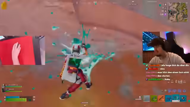 00:14:52Während des Streams werden verschiedene Matches gespielt. Dabei werden die neuen Waffen wie das neue Sturmgewehr und die Shotgun getestet. Das Matchmaking führt zu sehr unterschiedlichen Gegnern; mal auf dem Niveau von Randoms, mal gegen hochrangige eSportler. Dies wird als teilweise frustrierend, aber auch als erfrischend empfunden. Insbesondere gegen einen dänischen Pro-Spieler in der Lobby wird deutlich, wie stark das Skill-Level variieren kann. Der Fokus liegt auf dem Test der neuen Items und deren Nützlichkeit im Wettbewerb.