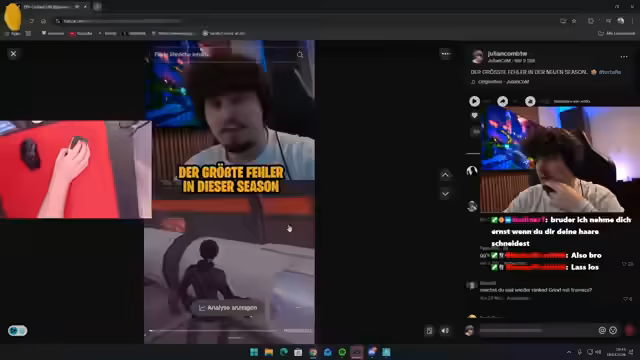 01:34:09Der Streamer beginnt mit dem Verteidigen seines intensiven TikTok-Grinds, den er als 'komplett valid' bezeichnet. Er zeigt vier Videos an und fragt nach der Meinung des Chats. Parallel dazu gibt es erste technische Probleme mit demRanked-Modus, der jedoch schnell wieder funktioniert. Er erwähnt seinen ersten Platz im Cash Cup und seine Motivation, seinen Freund im Rank zu unterstützen, auch wenn es wegen Verspätungen zu Wartezeiten kommt. Er reflektiert über den Start in der neuen Season und stellt Chat die Frage, wie sie diese auf einer Skala von 1 bis 10 bewerten würden.