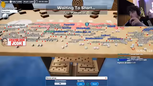 05:37:29Um 20:37 Uhr beginnt das Giveaway mit 265 Teilnehmern. Die Regeln werden klar erklärt: Durch 'Play' im Chat erhält jeder eine zugewiesene Murmel. Ein Rennen startet, bei dem die Murmeln auf einer Strecke zum Ziel rollen. Subs, Mods und VIPs werden farblich markiert. Der Streamer betont die Chancengleichheit und gibt kurz vor Start letzte Anweisungen, während dieSpannung unter den Zuschauern steigt.