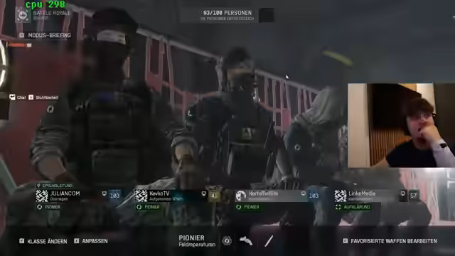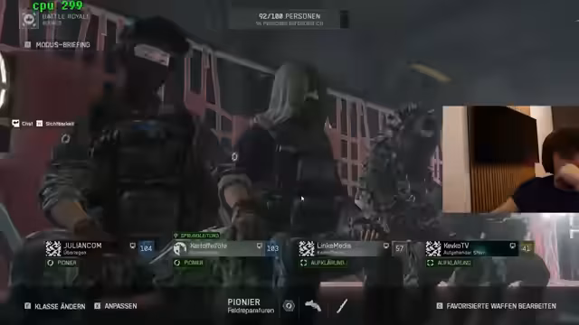 00:02:27Die Spieler diskutieren ihre Gewinnchancen im bevorstehenden Battlefield-Turnier und schätzen diese auf 90 % ein, obwohl sie die Unvorhersehbarkeit von Battlefield-Matches anerkennen. Es wird über die Strategie gesprochen, in der Mitte der Zone zu spielen, um Rotationen zu erleichtern, und die Möglichkeit, die Konsole auf Neuseeland-Zeit umzustellen, um früher auf neue Spielinhalte zugreifen zu können. Ein wichtiger Punkt ist die Platzierung des Pokals im Stream, sollte das Team gewinnen, mit der Idee, einen Wanderpokal daraus zu machen. Die Länge der Pre-Lobby in Battlefield wird als Katastrophe empfunden, im Gegensatz zu Fortnite, wo die Pre-Game-Lobby als zu schnell empfunden wird, was keine Zeit für Pausen lässt. Die Spieler betonen die Wichtigkeit einer guten Ausrüstung und diskutieren über die Effektivität bestimmter Waffen und Aufsätze, wie den Revolver, der als sehr stark gilt, und die Mündungsbremse, die denselben Effekt wie ein Schalldämpfer haben soll, aber kostengünstiger ist.
