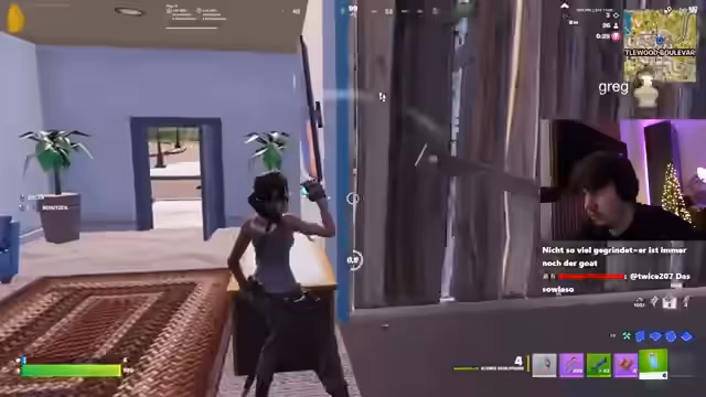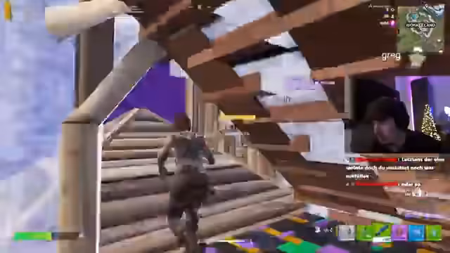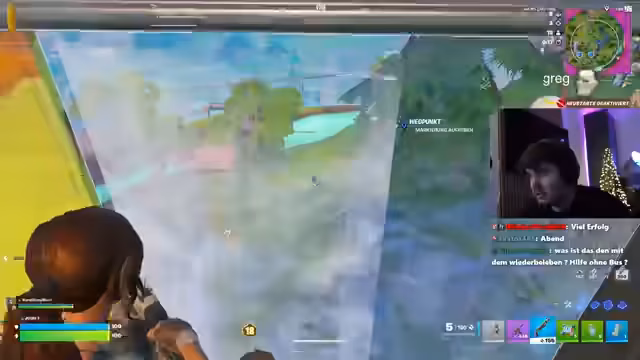 03:04:19Während des Streams werden verschiedene Runden im Spiel Fortnite gespielt. Der Streamer und sein Duo Jami erleben sowohl Erfolge als auch Rückschläge. Ein wiederkehrendes Problem sind Ladezeiten und Texturen, die nicht korrekt geladen werden, was zu unfairen Toden führt, als der Streamer "durch die Möcke gefallen ist". Diecommentatoren diskutieren über die Performance des Spiels, Stream-Hänger und störende Geräusche im Hintergrund, was die Konzentration beeinflusst.