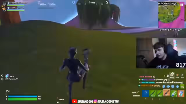 00:05:47Während des Gameplays diskutiert der Streamer intensiv über seine Taktiken und die Stärken verschiedener Waffen. Er experimentiert mit dem goldenen Jagdgewehr, das er für überpowered hält, und tauscht sich über die neuen Rifts und Ziplines aus, die die Map durchziehen. Seine strategische Vorgehensweise wird deutlich, als er seine Position nutzt, um Gegner mit Lenkraketenwerfern anzugreifen, und dabei in einen Kampf zwischen zwei Teams gerät, um Vorteile zu schlagen.