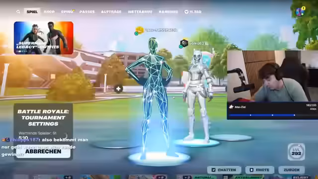 00:01:01Der Stream beginnt mit dem Ziel, den gesamten Tag für Fortnite zu grinden, um das KATOO CUP FINALE zu gewinnen. Der Streamer äußert seine Anspannung und Motivation und betont, dass er mit 100 Prozent gewinnen will. Er informiert über die Turnierregeln, die Anonymität deaktivieren, und diskutiert über die Einrichtung des Victory-Clients. Es werden auch Items wie das 'Golden Cape' als strategisch wichtig identifiziert.