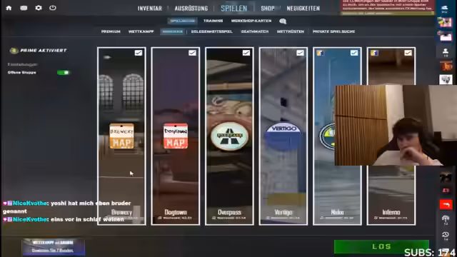 02:12:55Nach einem weiteren Sieg wird eine intensive Diskussion über eine Wette auf den Gewinner eines Matches geführt. Lennart hat 50.000 Punkte auf den Gewinner gesetzt. Der Streamer bittet Zuschauer, seinem Discord beizutreten, um sich zu organisieren, was zu Verwirrung führt, da der falsche Discord-Link geteilt wird. Nachdem der korrekte Link gesendet ist, wird ein 5er-Stack für Wingman gebildet, um Punkte zu sammeln.