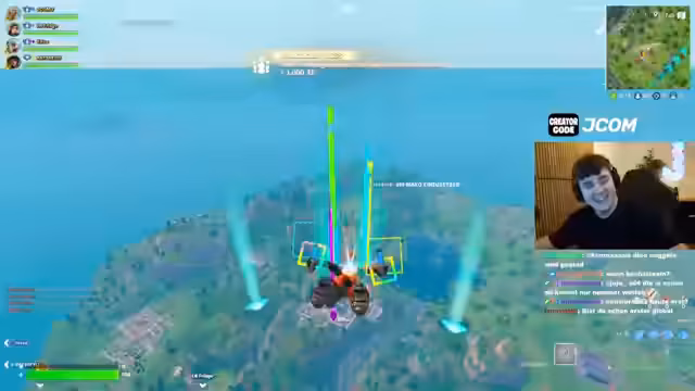 05:08:09Der Streamer beginnt das Training von Rocket Rails und erkundet diese Taktik erstmals im Spiel. Nach anfänglichen Schwierigkeiten und der Nutzung von Jump Pads wird er jedoch schnell eliminiert. Sein Team ist in einen intensiven Kampf involviert, bei dem der Streamer eine Kombination aus Grapplern, Rocket Launchern und Schilden einsetzt, um den Gegner anzugreifen. Das Team agiert koordiniert, um in der Zone zu überleben und den Gegner zu überraschen.