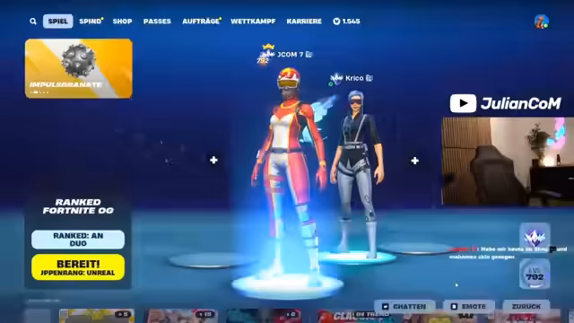 00:01:16Der Stream startet mit einer lockeren Begrüßung des Chats und des Co-Moderators Chad. Julian informiert über seinen persönlichen Sonntagsablauf und kündigt sein Hauptziel für den Tag an: Er möchte durch konsequentes Grinden den ersten Platz in der aktuellen Fortnite-Rangliste halten und hofft, die benötigten zwei Prozent an Siegen noch zu erreichen, um dies zu realisieren. Es folgt eine Runde der Begrüßung mehrerer prominenter Fortnite-Namen aus der Community.