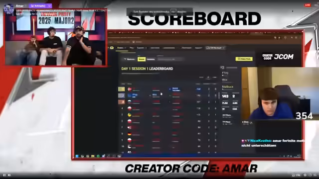 03:12:47Der Streamer kritisiert die Moderation des offiziellen FNCS-Streams, das er als weniger kompetent empfindet, und lobt stattdessen alternative Streamer wie Ammar. Er äußert die Meinung, dass nur ehemalige Profis als Kommentatoren wirklich das Spiel verstehen könnten. Nach Abschluss des ersten Tages wird ein Ausblick auf den zweiten Tag gegeben. Die Spannung bleibt hoch, da die Plätze 1 bis 10 sehr dicht beieinanderliegen und nur geringe Punkteunterschiede über die Qualifikation für die Weltmeisterschaft entscheiden.