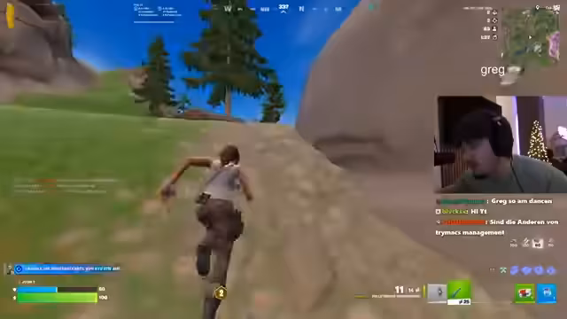 00:27:23Der Streamer teilt einen Clip von Hanky und Sven, die gestern ein beeindruckendes Teamplay ohne Voice-Communication zeigten. Er beschreibt ihre präzise Sprunglandung und Abstimmung als „insane Prediction“ und erwähnt, dass dies als Beispiel für die Effizienz dienen soll, die im Turnier nötig ist. Die Community reagiert mit Begeisterung auf das gezeigte Zusammenspiel.