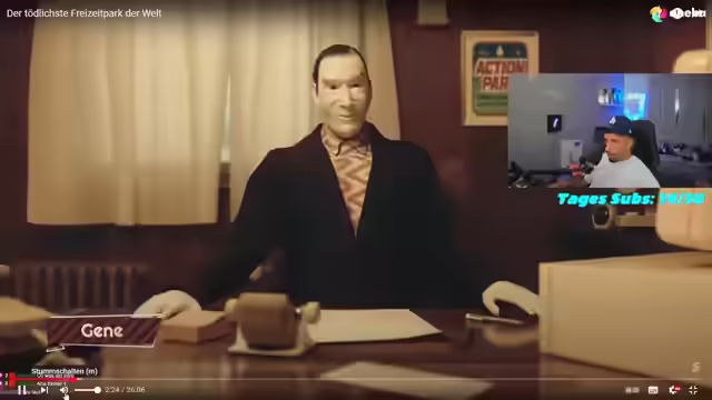 01:43:57Nachdem die Diskussion über Autos beendet ist, wird angekündigt, dass eine Dokumentation über die Wokro Mafia angesehen wird, gefolgt vom Twitch-Doc-Chat. Die erste Doku wird jedoch schnell abgebrochen, da sie als uninteressant empfunden wird. Stattdessen wird eine Doku über den Action Park ausgewählt, einen gefährlichen Vergnügungspark. Der Park wird als wild und potenziell tödlich beschrieben, mit Besuchern, die sich verletzen und durch gefährliche Gewässer waten. Es gibt mehr Biertheken als Eisdielen, und die Gäste stacheln sich im Rausch zu riskanten Aktionen an. Rettungsschwimmer müssen täglich viele Menschen aus dem Wellenbad fischen, und das nächstgelegene Krankenhaus ist überlastet. Das inoffizielle Motto des Parks ist "No risk, no fun". Es wird die Frage aufgeworfen, wer freiwillig einen solchen Park besuchen würde.