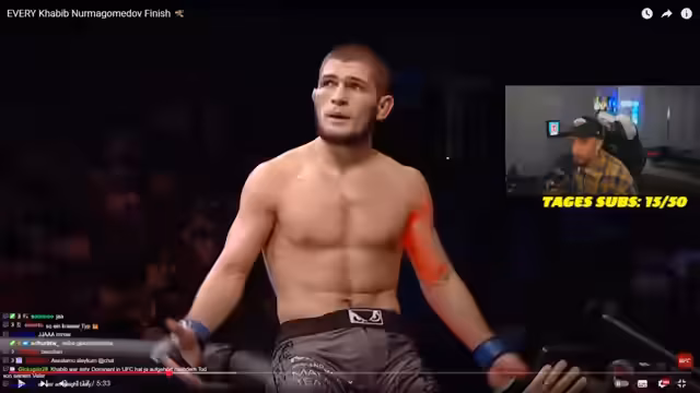 00:48:28Ein weiterer Schwerpunkt liegt auf der detaillierten Analyse von Kämpfern wie Khabib Nurmagomedov und Chimaev. Der Streamer bewundert ihre Kampfkunst und disziplin, insbesondere ihre Fähigkeit, auch nach einem Knockout weiterzukämpfen. Er geht auf die Regeln und kulturellen Bräuche innerhalb der kaukasischen MMA-Szene ein, warum Kämpfer wie Khabib und Chimaev niemals gegeneinander antreten würden, und verweist auf deren beeindruckende Kampfbilanz.