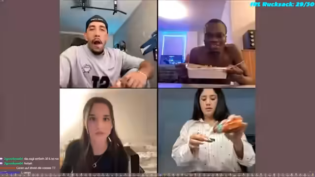 03:00:41Im Stream wurden mehrere Rap-Battles ausgetragen, in denen die Teilnehmer mit provokanten und vulgären Lines gegeneinander antraten. Es ging um diverse Angriffe auf das Aussehen und die Fähigkeiten des Gegners. Ein Teil des Textes beschäftigt sich mit dem Vergleich von Rappern und ihren Fähigkeiten, wobei auch mehrere Beleidigungen ausgetauscht wurden. Diese Battles scheinen ein fester Bestandteil des Formats zu sein.