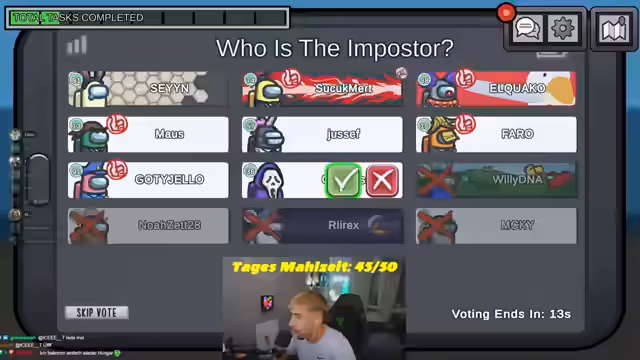 05:04:06Der Stream beginnt mit intensiven Diskussionen um Among Us-Runden. Die Stimmung ist aufgeheizt, da der Streamer und andere Teilnehmer über Spielabläufe, Votings und gefühlte Ungerechtigkeiten sprechen. Es kommt zu Streit über das Verhalten von Mitspielern, muten von Spielern und die Zählung von Runden, in denen mehrere Personen, darunter auch Impostor, ausgeschieden sind. Der Streamer äußert Frustration über die unfairen Spielzüge und die damit verbundenen Konsequenzen.