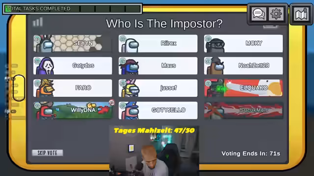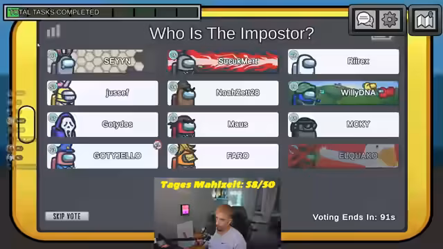 04:03:23Die Diskussion konzentrierte sich zunehmend auf die Notwendigkeit, einen Spieler zu voten. Die Verdächtigen richteten sich stark auf Eldos und Noah, da sie in verdächtigen 'Camps' gesehen wurden. Es wurde auch Matze als mögliches Ziel genannt, da er in einer früheren Runde 'safe' war und nun wieder im Verdacht stand. Die Spieler versuchten, die Laufwege und Alibis zu rekonstruieren, um den oder die beiden verbleibenden Impostor zu identifizieren und das Spiel nicht zu verlieren.
