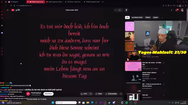 00:31:31Ein Fokus des Streams lag auf dem Hören und Analysieren von emotionalen Liebesliedern, insbesondere von Künstlern wie Nino und Chad. Der Streamer diskutierte die Musik im Kontext von Beziehungen und der Gesellschaft und stellte Fragen nach der Authentizität von Gefühlen und der Bedeutung von Treue. Dies führte zu Reflexionen über die Darstellung von Liebe in der Musik und deren Auswirkungen auf die Zuhörer.