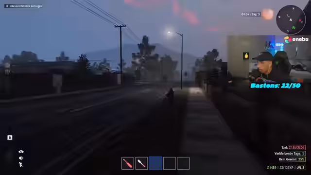 01:46:42Der Fokus verschiebt sich zum Gameplay des Einbruch-Simulators. Der Streamer und sein Mitspieler agieren als Einbrecher, die innerhalb einer festen Zeit Geld klauen müssen. Die Mission ist riskant, da laute Bewegungen alarmieren können. Das Gameplay beinhaltet das planmäßie Durchsuchen von Häusern, das Sammeln von Wertgegenständen und das Verstecken der Beute, während stets die Anwesenheit der Bewohner beachtet werden muss.